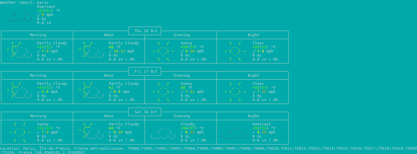 curl wttr.in/paris.png?background=00aaaa # 背景色设置,RRGGBB格式
