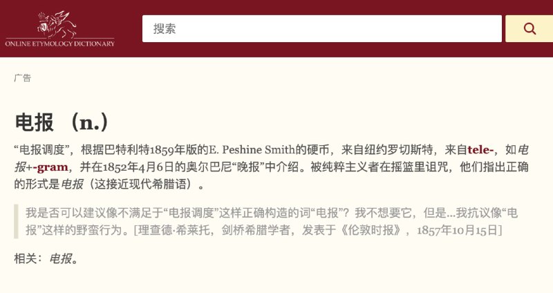 一个查询单词来源的网站,界面经过了 Edge 机器翻译。